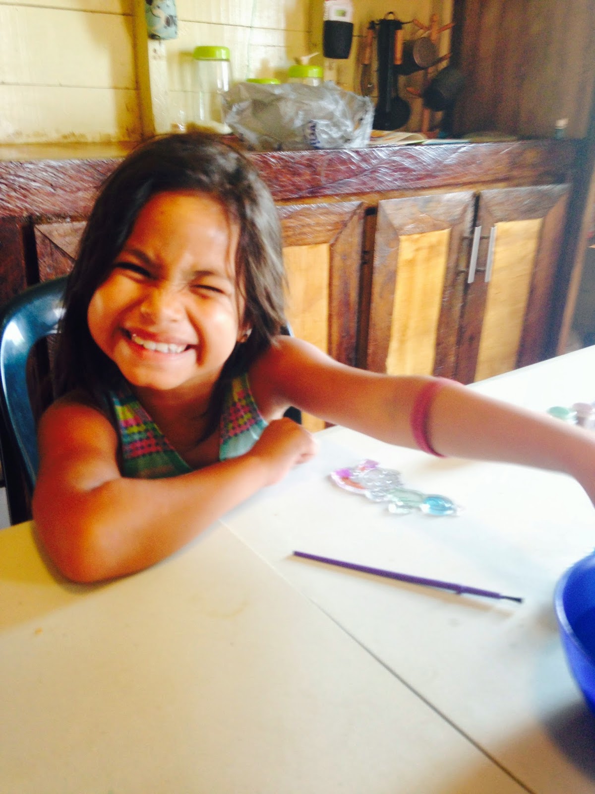 During rest time, she had worked with Jesse, another missionary kid who is staying with us for a few days while Richard is out of town, and had learned not only several new English words but also what they rhymed with.