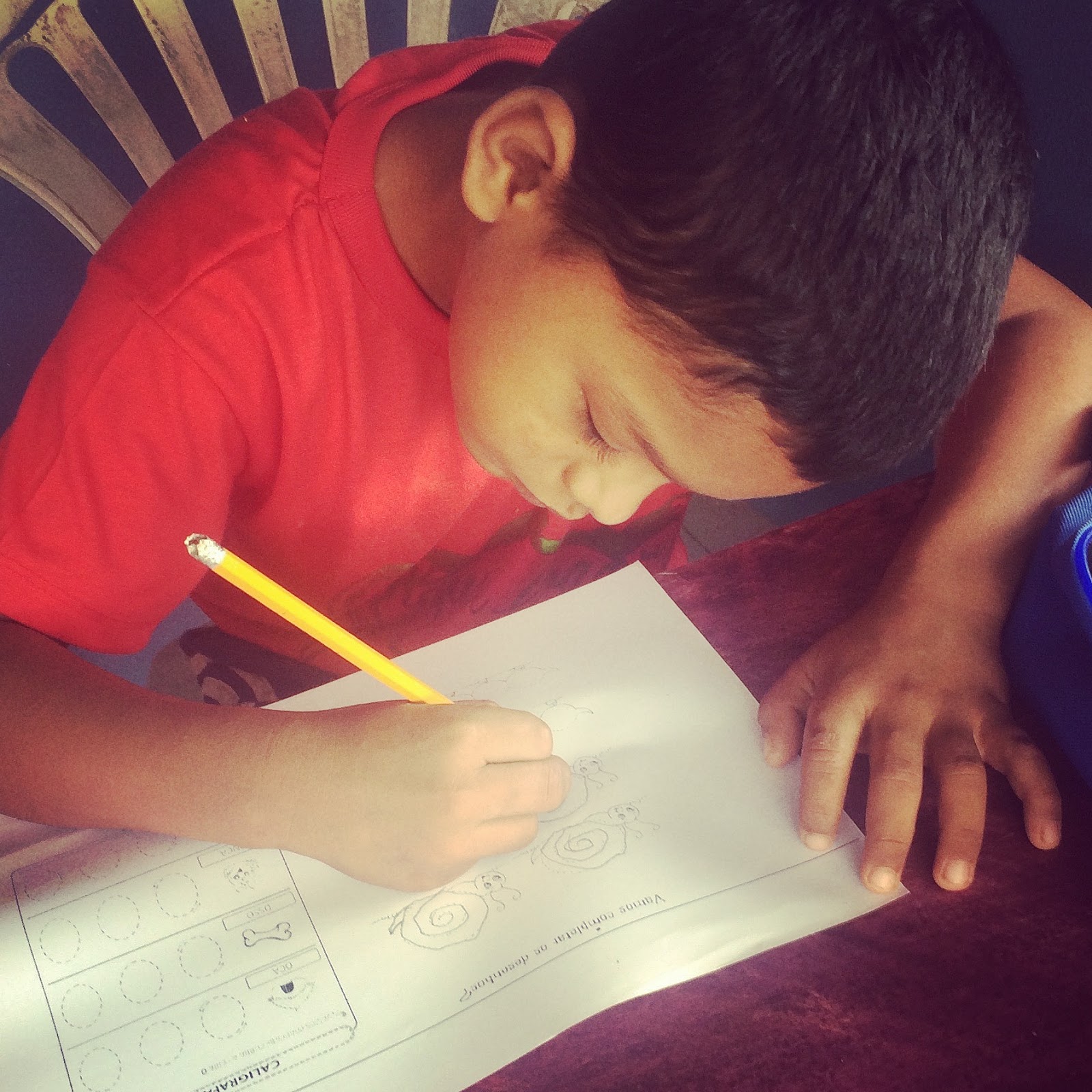 “Hey, you’re doing great! I’m so proud of you. Look at this “o”! You’re really learning a lot,” I spoke truth over him. I smiled at him. “You’ve got this.”